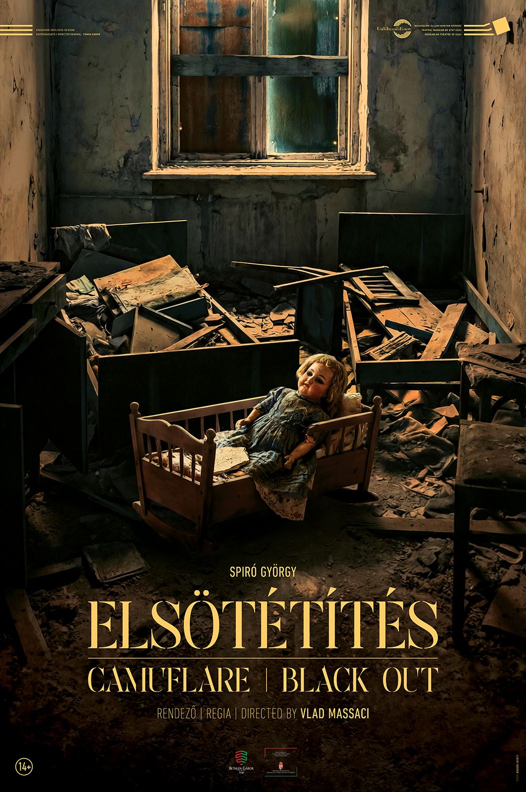 1944 ősze, Budapest. A város légoltalmi elsötétítés alatt él: az ablakok takarva, a fény bent szorul. Spiró György szereplői ebben a környezetben néznek szembe a történelemnek kiszolgáltatott, tehetetlen egyén lehetséges döntéseivel. Kertész Imre szerint a mű ugyanarról szól, amiről korunk történelme is: a pusztító őrület és a kreatív józan ész konfliktusáról. Ez a konfliktus nem csatatereken, hanem a dialógusokban zajlik: a metszően pontos mondatok ritmusa az előadás szíve.
